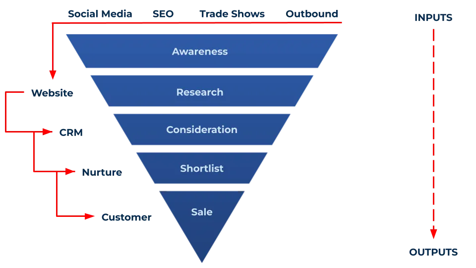 The integrated funnel solves this by turning your Website, CRM, and Outreach into a single, synchronized "Flywheel." In this system, high-value inbound social media content acts as your digital storefront, attracting the new generation of buyers and driving them to a Website (Pillar 1) engineered for conversion. Once they engage, your CRM (Pillar 2) captures their behavioral data and triggers targeted Outreach (Pillar 3) sequences that nurture the relationship based on their specific technical interests.